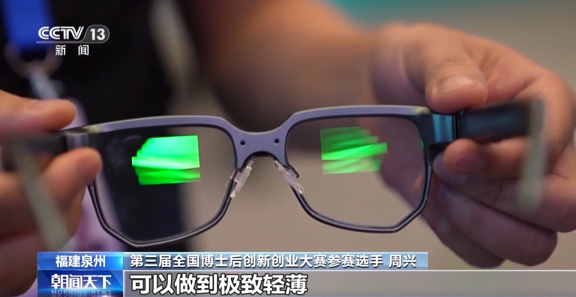第三届全国博士后创新创业大赛参赛选手 周兴:AR眼镜之所以能够那么轻,是因为它使用了树脂光波导的技术元富投资,可以做到极致轻薄。明年我们会进一步做到25克。